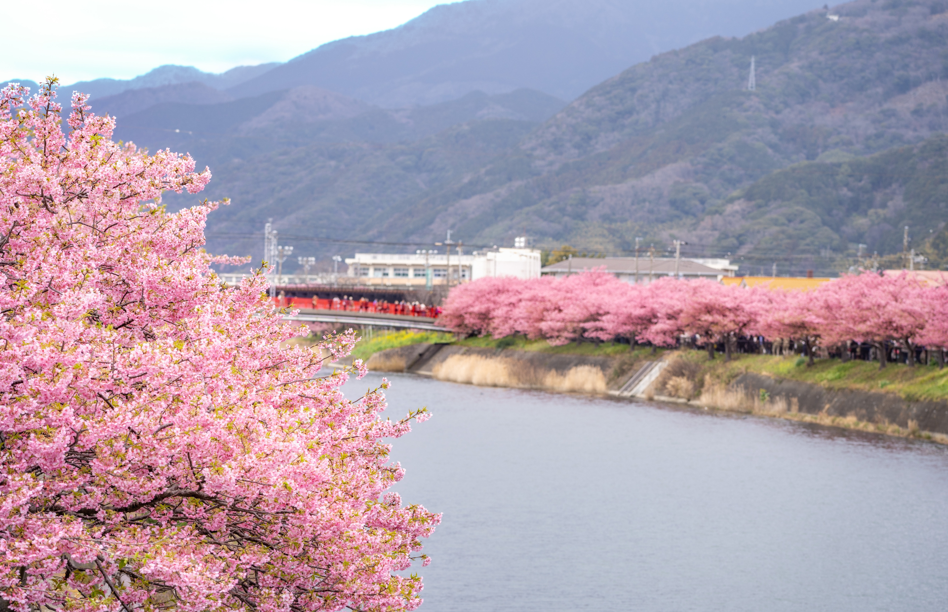 河津川沿いを中心に、多くの桜スポットが点在しており、散策しながら異なる景観を楽しめます。